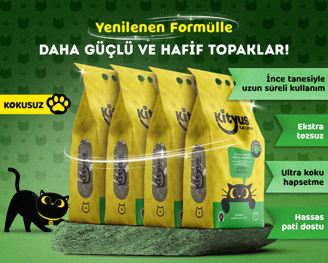 - Kityus Aktif Karbonlu Kedi Kumu, kedilerin normalden daha fazla kötü koku bırakabilecekleri bazı özel dönemlerinde içerdiği aktif karbon etkisiyle idrardaki inorganik maddeleri hızlıca tutarak bakteri üremesini engelleyen ekstra koku hapsetme özelliğine sahiptir. Parfüm içermez.